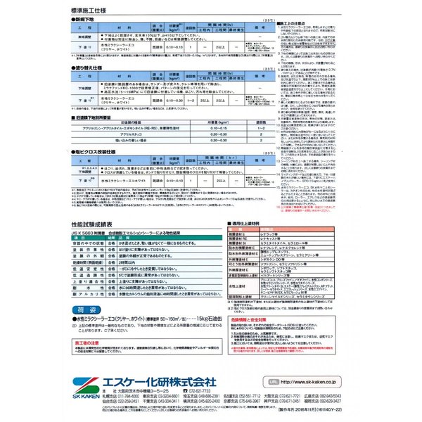 規格:JIS K 5663 合成樹脂エマルションシーラー