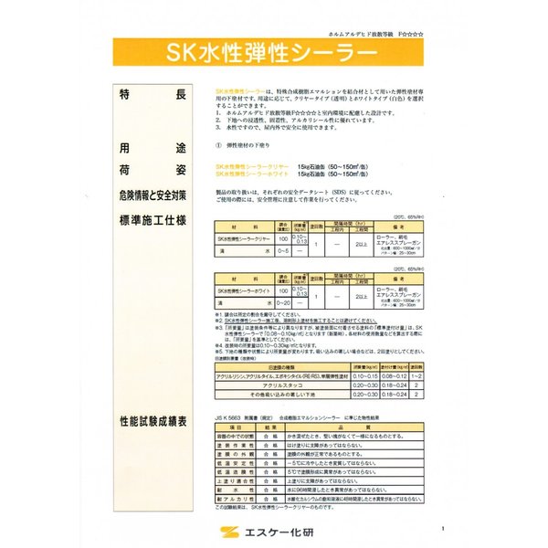 SK水性弾性シーラーは、特殊合成樹脂エマルションを結合材として用いた弾性塗材専用の下塗材です。