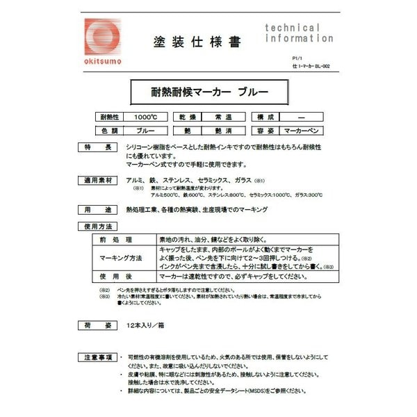 ☆オキツモの耐熱耐候マーカーは、シリコン樹脂をベースとした耐熱インクですので、耐熱性はもちろん、耐候性にも優れています。
