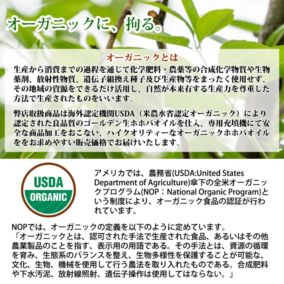 ・季節やロットによって香りの強弱がある場合があります。ホホバ特有の香りの為、劣化臭ではないかとご心配される方がおられますが、品質には全く問題ございません。安心してご使用ください。