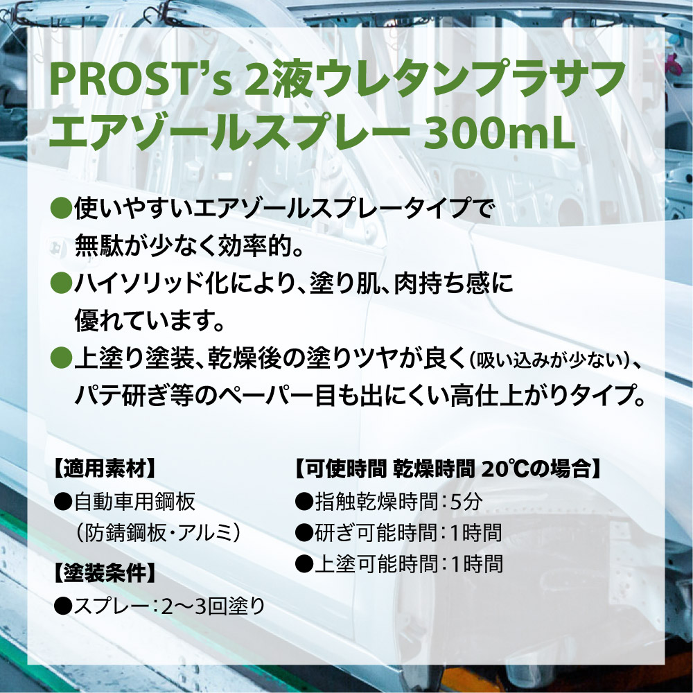PROST’s 2液ウレタンプラサフスプレー ライトグレー 300mL /プラサフ 自動車用ウレタン塗料 ウレタン 塗料 サフェーサー エアゾール スプレー