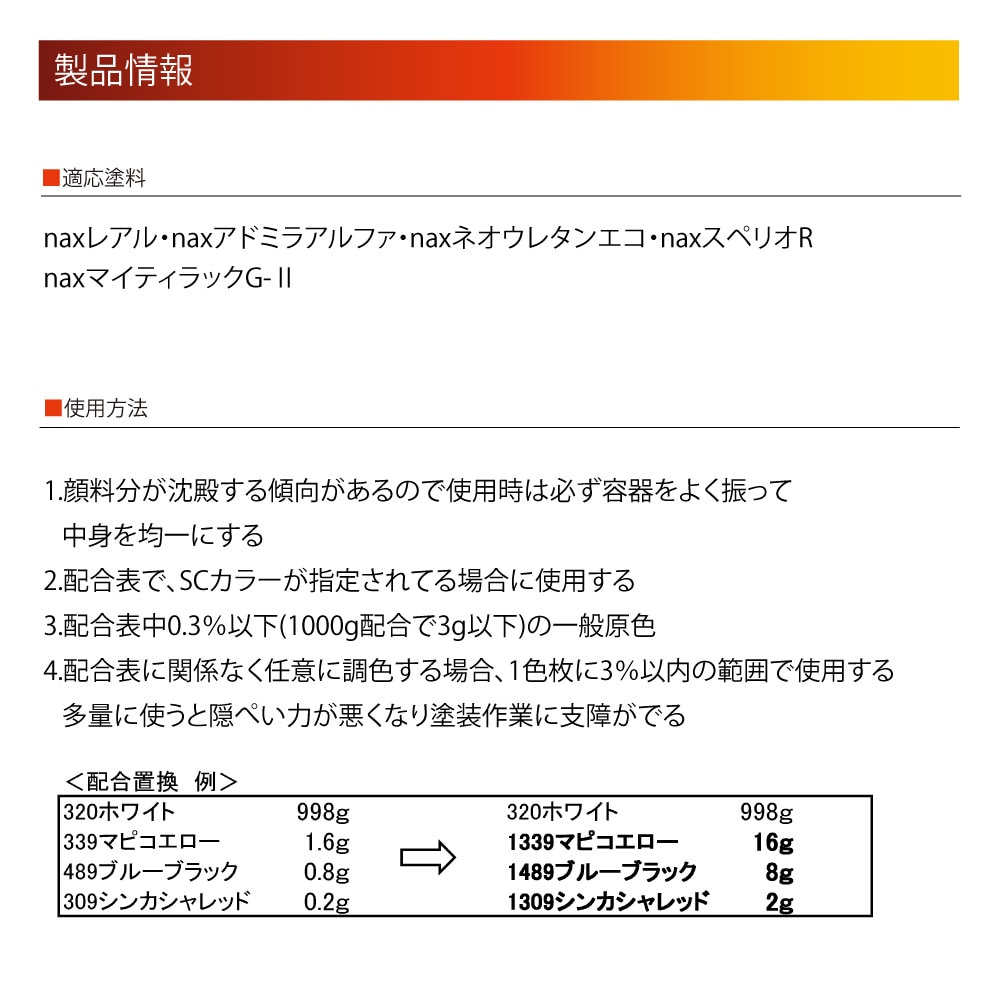 ■ウレタン系上塗塗料の調色に共通して使用できる微調色専用原色