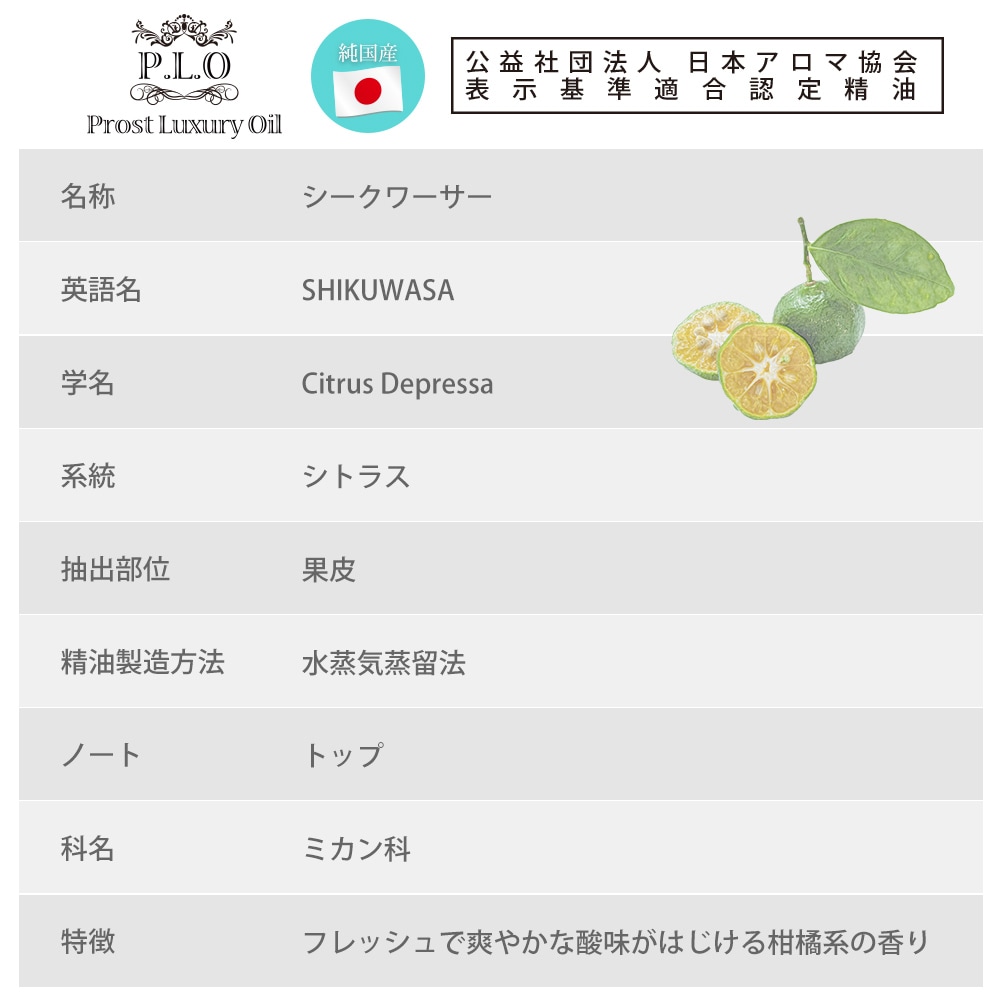 Prost Luxury Oil 和精油 シークワーサー 50ml ピュア エッセンシャルオイル アロマオイル 精油 純国産